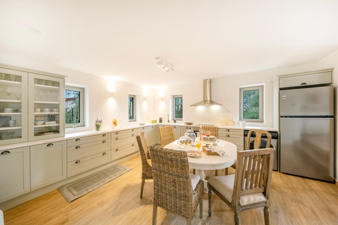 Three-Bedroom Villa. This villas special feature is the private pool. Featuring a private entrance, this air-conditioned villa consists of 1 living room, 3 separate bedrooms and 2 bathrooms with a shower and a hairdryer. The well-fitted kitchen features a stovetop, a refrigerator, a dishwasher and kitchenware. Boasting a balcony with garden views, this villa also provides a washing machine and a flat-screen TV. The unit offers 3 beds.