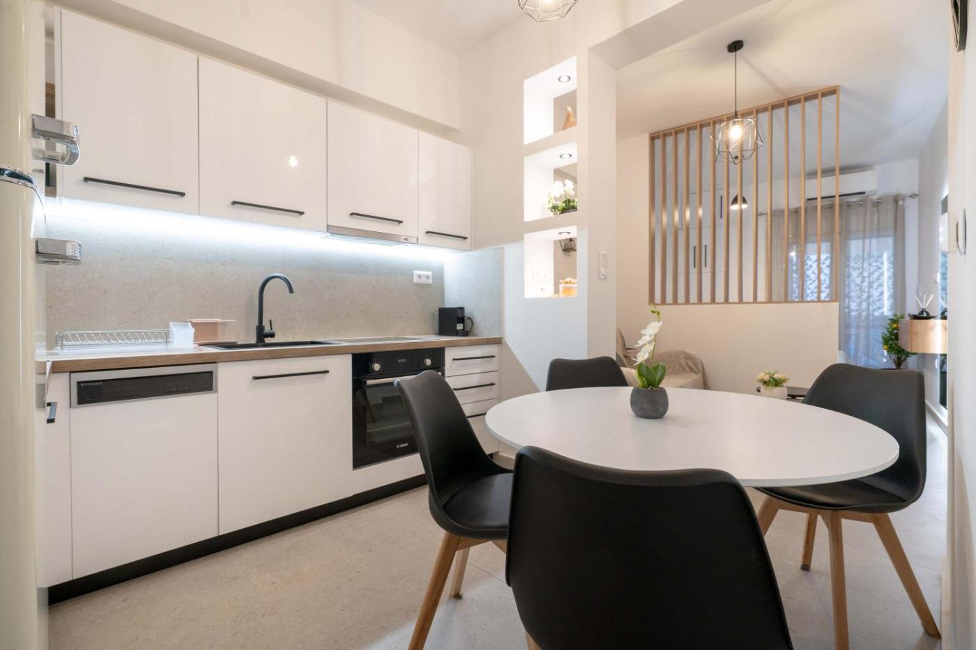 The apartment with a balcony and city views features 1 bedroom, a living room, a flat-screen TV, an equipped kitchen with an oven and a microwave, and 1 bathroom with a bidet. A private entrance leads gueststhe apartment,they can enjoy some wine or champagne and fruits. This apartment is non-smoking and soundproof.